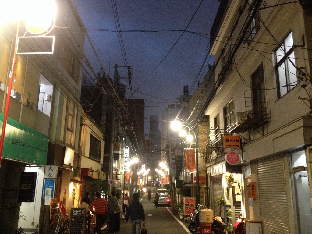 会場を出るともう夕暮れ。並びの飲み屋さんがちらほらと明かりを灯し始めていました。芝居の続きがまた始まるようで、逃げるように飲食街を後にしました。