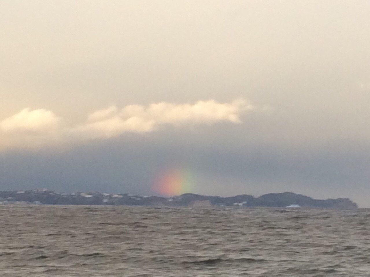 熱海を後にする頃、海の上にとても太い虹の足がくっきりと生えているのをみんなで見ました。それは夕暮れと相まってとてもきれいで、見えなくなってしまうのが惜しいぐらいでした。