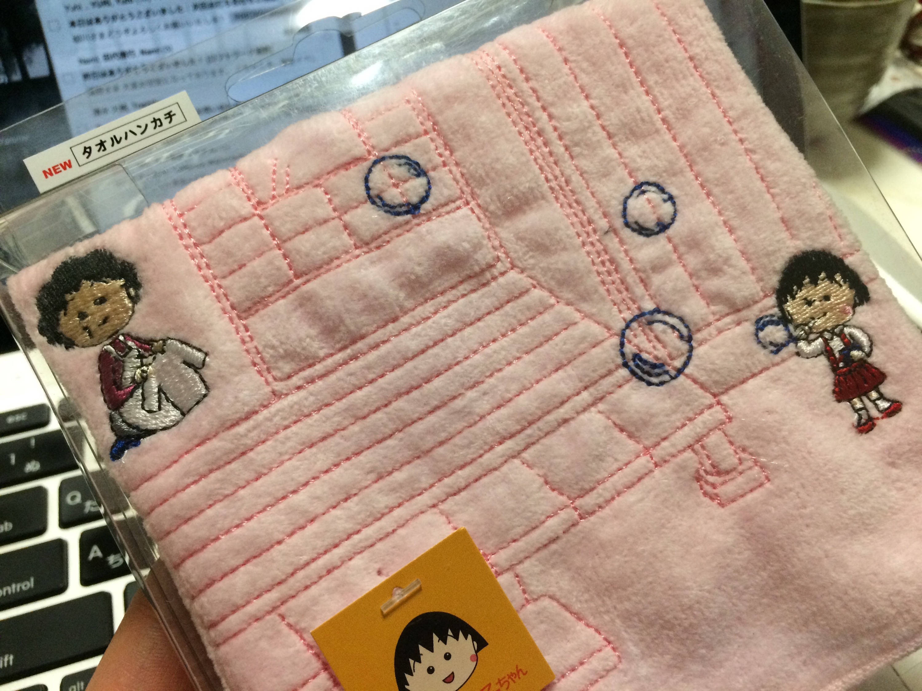 ちびまる子ちゃんが縁側でシャボン玉を吹いているのをお母さんが家の中で洗濯物を畳みながら微笑ましく眺めている、という刺繍のタオルハンカチを頂きました。かわいくて懐かしくて、とてもうれしくなりました。買ってきてくれた一子さんも立派にちびまる子ちゃん側の佇まいでした。彼女もやはりちびまる子ちゃんだった頃があるのでしょうか。私は、ありますね。あります。
